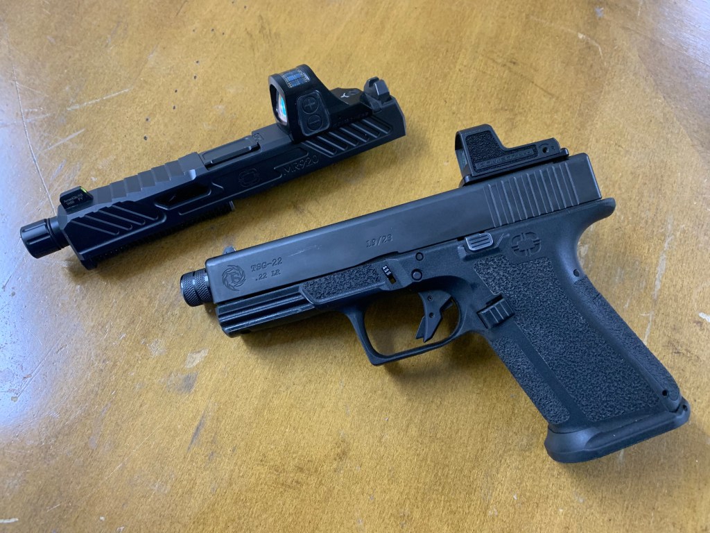 Thought I would do a little show & tell today. Here is my Covid trainer. Because of ammo prices, I put together a 22lr slide for the frame of my primary gun (Shadow Systems MR920 with Holosun 507C-GR-X2). The slide is a Tactical Solutions TSG-22 built for glocks. This build should work on any glock frame that will accept the TacSol slide.
